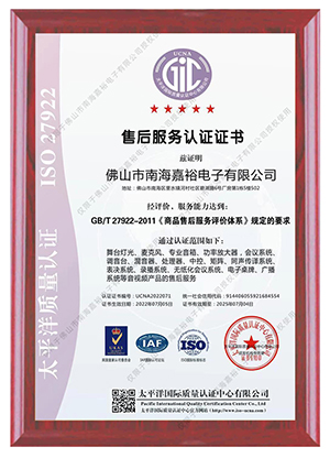 ISO 27922 售后服務(wù)認(rèn)證證書 中文