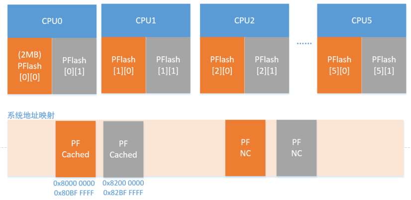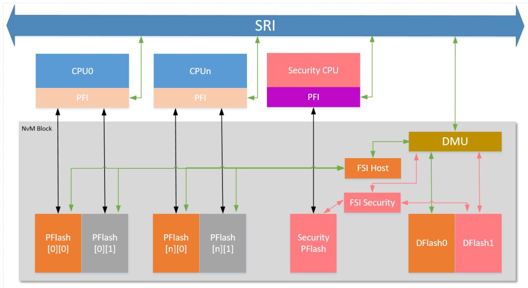 CPU 通過 PFI 接口可以獨立訪問與之關聯的 PFlash Bank,實現快速指令訪問,并且由于 CPU 關聯兩塊 PFlash ,實現了 RWW,對 SOTA 非常友好。