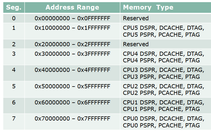 TC3xx地址映射以Segment進行劃分,每個Segment對應最高字節。