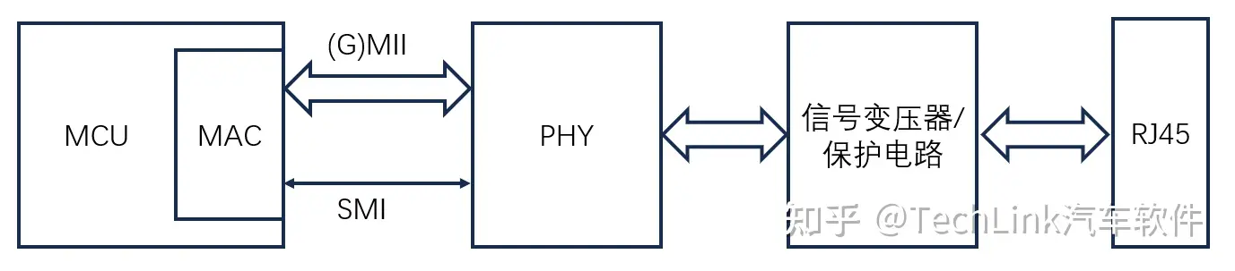 為了使讀者能夠更好地理解GETH模塊的相關功能,我們需要先介紹下車載以太網的硬件基本框架。