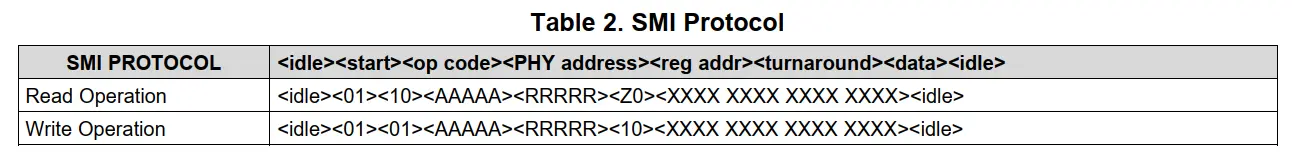 下方SMI接口用來進行PHY的配置,以及寄存器讀寫等操作。