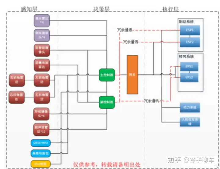 如果是兩個域控,布置的位置會遠一些,在極端的情況下,他們受到的影響也是獨立的,整個系統的安全性會提高很多。如果是設計兩個兩個完全相同的域控,則成本便會高很多,一般不會采用這樣的設計。為了兼顧成本,一般會選擇另外一個干其它工作的域控“兼職”做智駕域控的“副手”,在主域控出問題的時候,能夠代替主域控實施控車的職責,把車靠邊停下來即可。