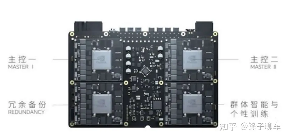 B.蔚來- 超算平臺 NIO Adam(1016TOPS):該智能駕駛域控平臺采用 4 顆 Orin-X 芯片,包括 2 顆主控芯片+1 顆冗余備份芯片+1 顆群體智能與個性訓練專用芯片。2 主控芯片用于實現 NAD 算法的全棧運算,包含多方案相互校驗感知、多源的高精度定位、多模態的預測與決策;1 冗余備份芯片用于在主控芯片失效的時候,確保車輛的安全。