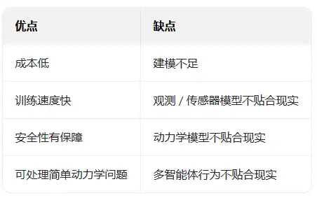 在該領域中,使用仿真作為強化學習訓練工具的原因有很多: