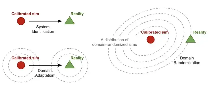 2. 領域自適應:旨在從源數據分布(仿真)中學習一個在不同(但相關)目標數據分布(現實)上表現良好的模型。