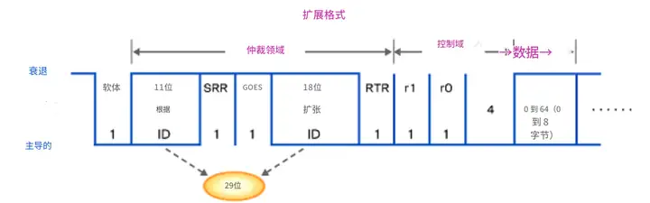 標準格式中的 ID在擴展格式中稱為“基本 ID ”,長度為 11 位,這部分與標準格式中的相同。