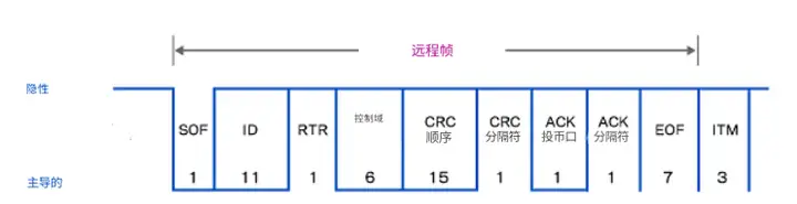 每個部分中的數字表示所用位的長度(位長度)。此外,當 CAN 總線沒有通信時,總線處于空閑狀態,稱為“總線空閑”。