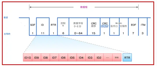 ID 之后是“ RTR ”。RTR 代表“遠程傳輸請求”(Remote Transmission Request),用于區分數據幀和遠程幀。對于數據幀,RTR 占主導地位。RTR 與 ID 一樣,也用于通信仲裁。