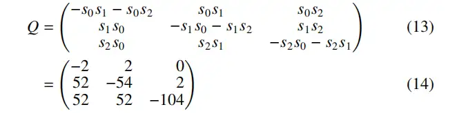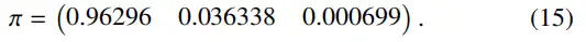 在根據架構創建 CTMC 模型并按照上一節的討論分配轉移率后,需要定義分析目標。這些目標被定義為模型的屬性。CTMC 模型的一個常見評估屬性是穩態分析,通過傳統的矩陣運算可以計算出在任意采樣時間點處于每個狀態的概率。以圖 3 中的示例為例,假設速率 φ?G=φ_mc=52(每周一次),η?G=η_mc=2(每兩年一次),則轉移率矩陣為: