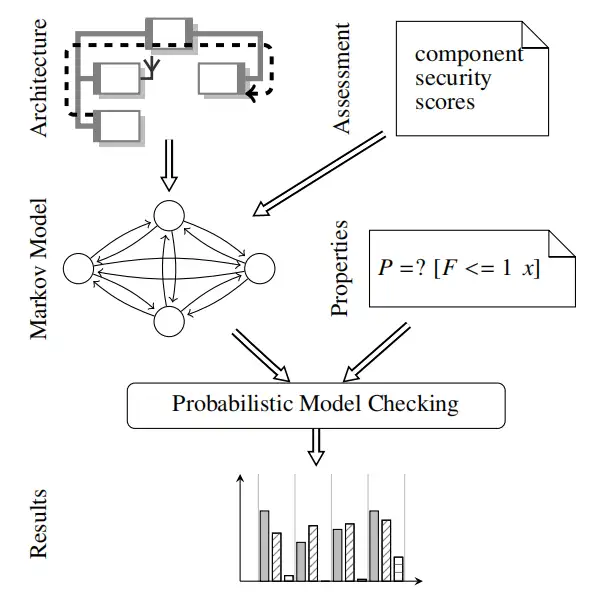 借助完整的馬爾可夫模型和定義的屬性,概率模型檢測器可得出所分析架構的安全值。